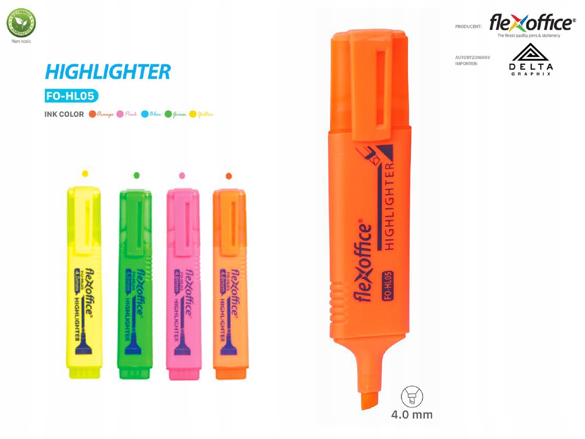 FlexOffice FO-HL05 Zakreślacz pomarańczowy 4mm 4 SZTUKI