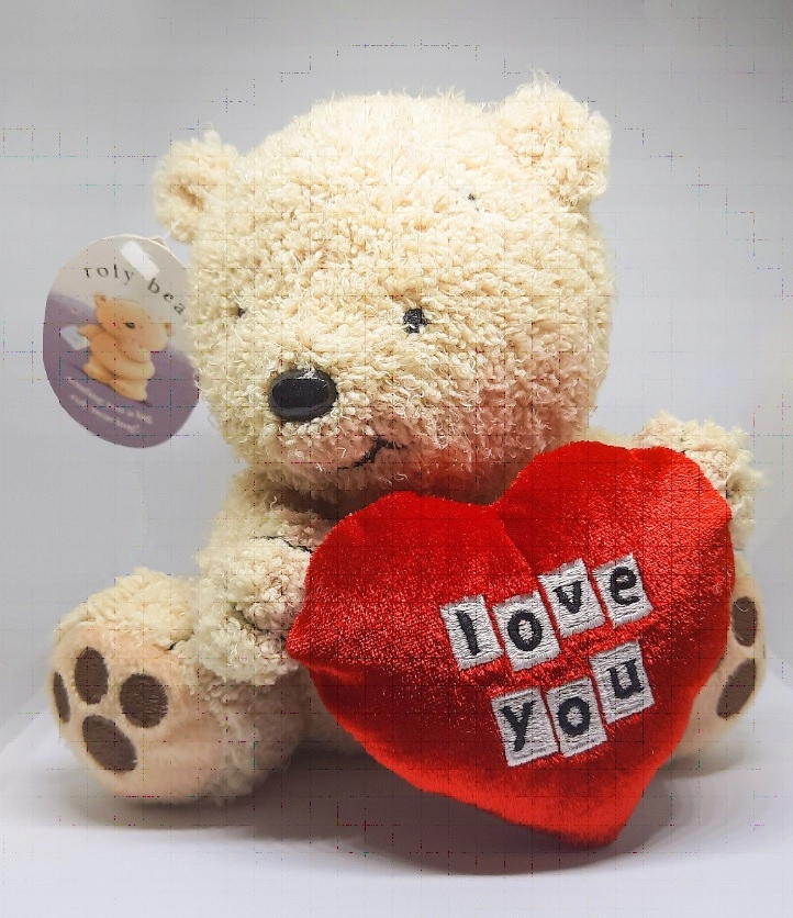 - Serce z napisem „Love You” trzymane w łapkach misia