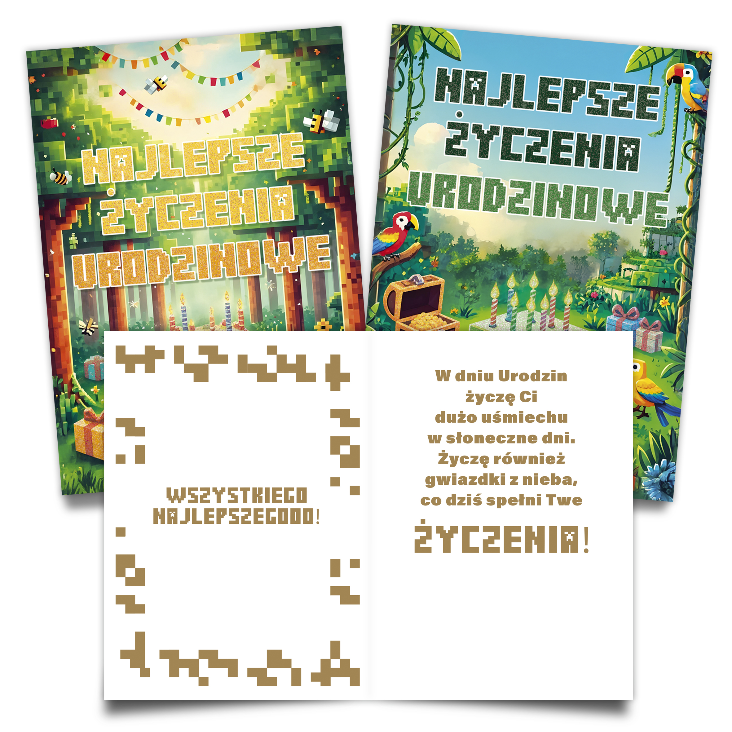• – środek karnetu z tekstem życzeń