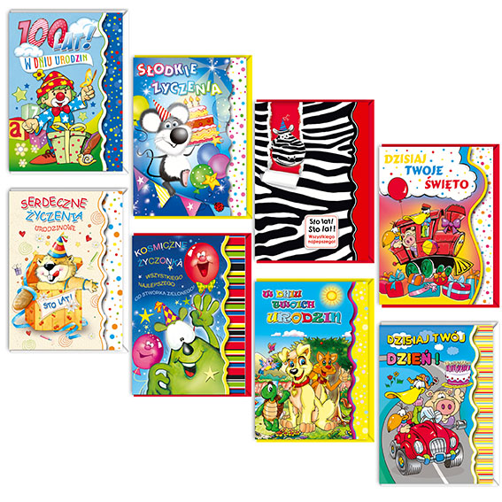 – kolorowe wnętrze karnetu z tekstem życzeń