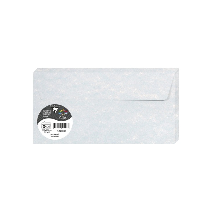 Kolorowe Koperty – Marmurkowy Niebieski – 20 Sztuk – Format DL – 120 g/m² – Zestaw – Francuska Jakość – Clairefontaine – Pollen – 120004C