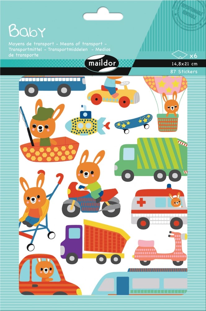 Kolorowe Naklejki – Środki Transportu – 6 Arkuszy – 87 Naklejek – Francuska Jakość – Maildor – AE166C