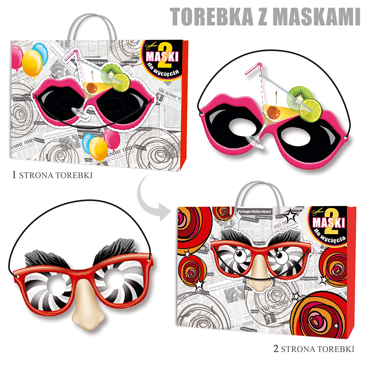 • – maski do wycięcia z dwóch stron torebki