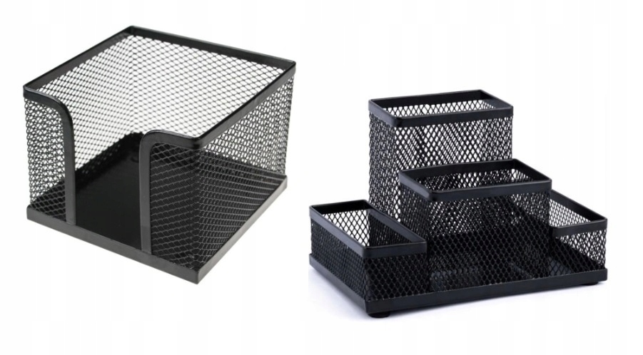 Zestaw dwóch przyborników biurowych, które pomogą Ci zachować porządek na Twoim biurku oraz utrzymać wszystkie niezbędne akcesoria biurowe w zasięgu ręki. Dzięki nim Twoje miejsce pracy stanie się jeszcze bardziej funkcjonalne, zorganizowane i estetyczne.