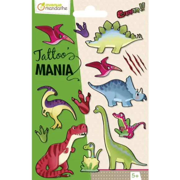 Zmywalne Tatuaże – Dinozaury – 1 arkusz (10 sztuk) – Francuska Jakość – Avenue Mandarine – CC059C