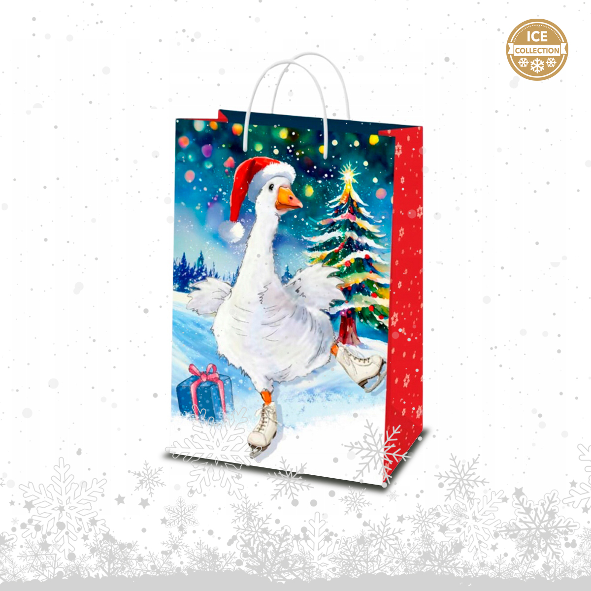 Świąteczna torebka prezentowa z uroczym motywem Gęś Pipa – doskonała dla wyjątkowych świątecznych upominków! Wykonana z najwyższej jakości papieru ozdobnego, torba została ozdobiona wyjątkowym, świątecznym motywem Gęsi Pipy – hitu Tik-Toka! Doskonała do świątecznych i okolicznościowych prezentów, dodając wyjątkowy urok każdemu podarunkowi.