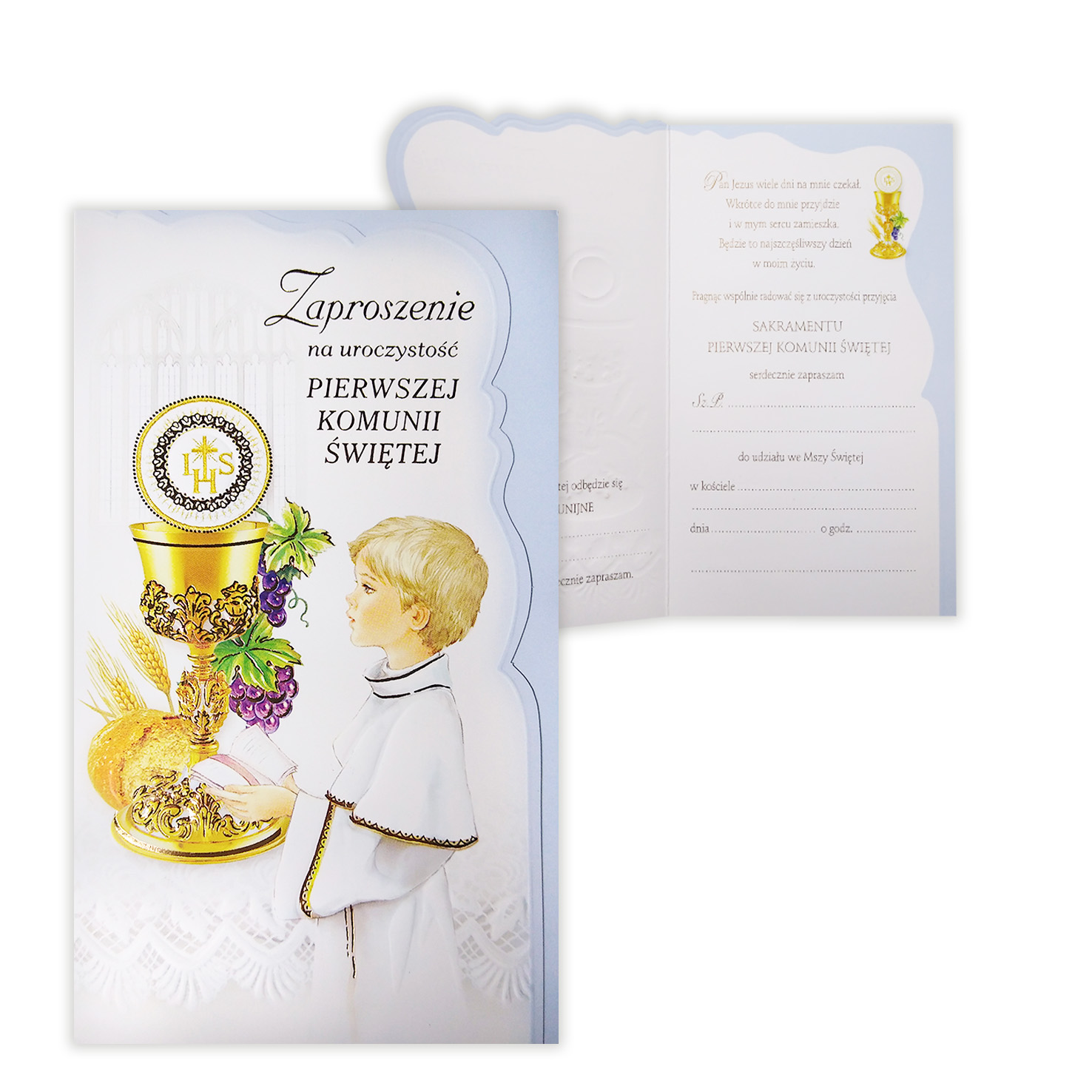 Zaproszenie Komunijne Dla Chłopczyka z uszlachetnieniem: