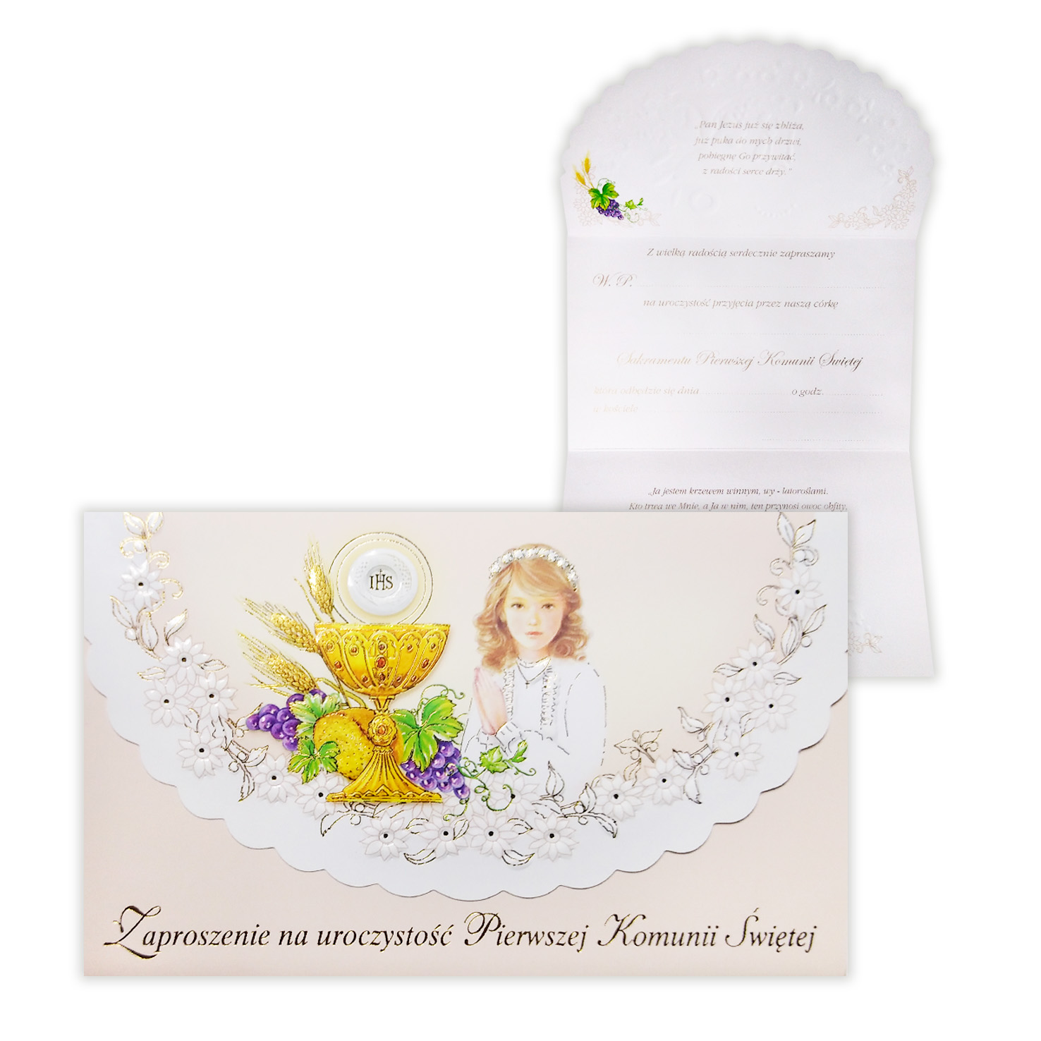 Kup TerazZaproszenie Komunijne Dla Dziewczynki z uszlachetnieniem: